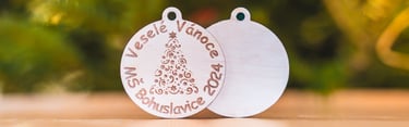 Součástí každého balíčku je dárková taška a dřevěná ozdoba vyrobená na míru Vaší školce nebo škole.